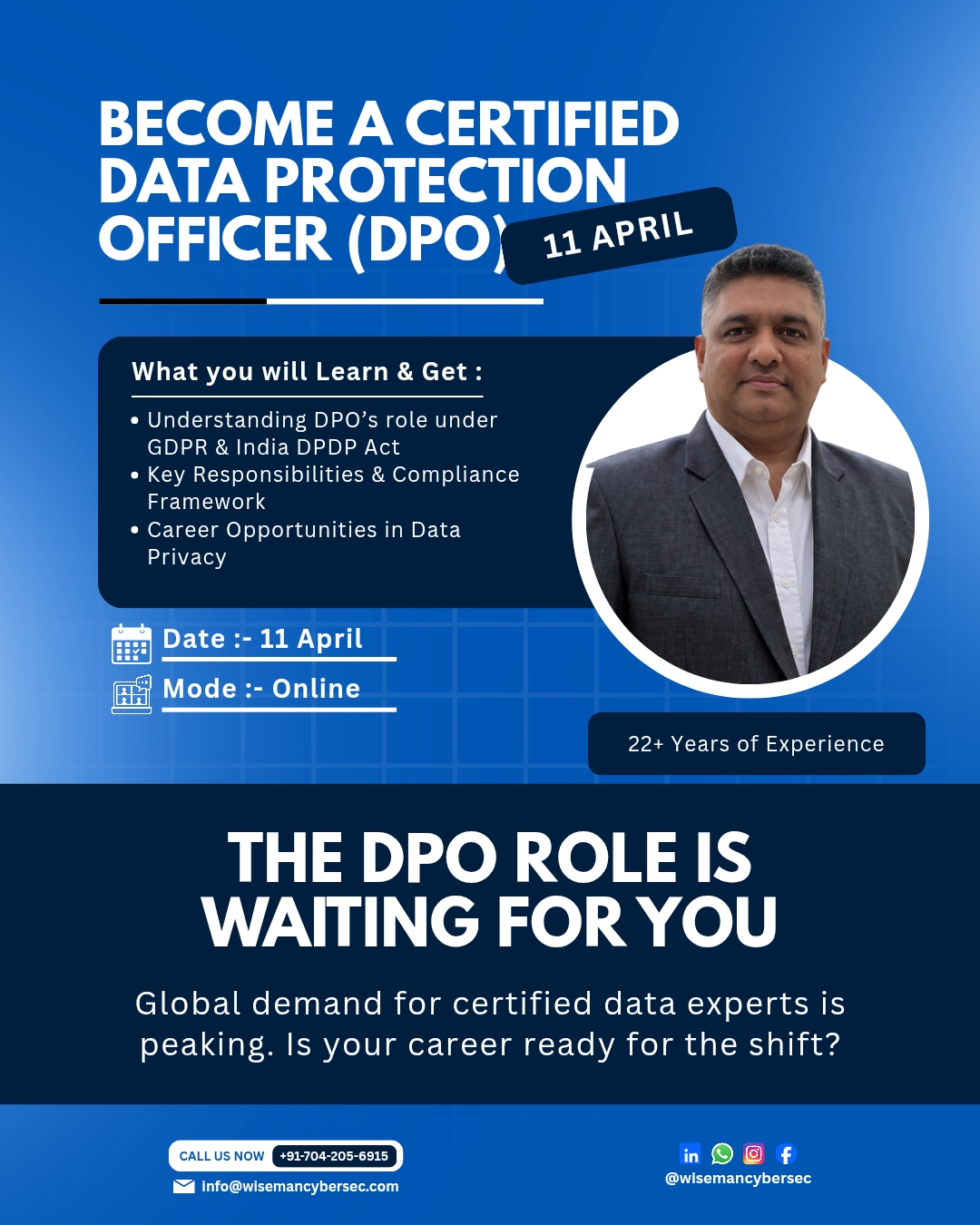 - DPO / DPDP readiness, ISO 27001 Lead Auditor